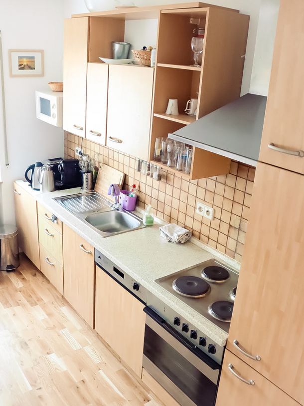 • modern eingerichtete Küche mit Mikrowelle und Spülmaschine